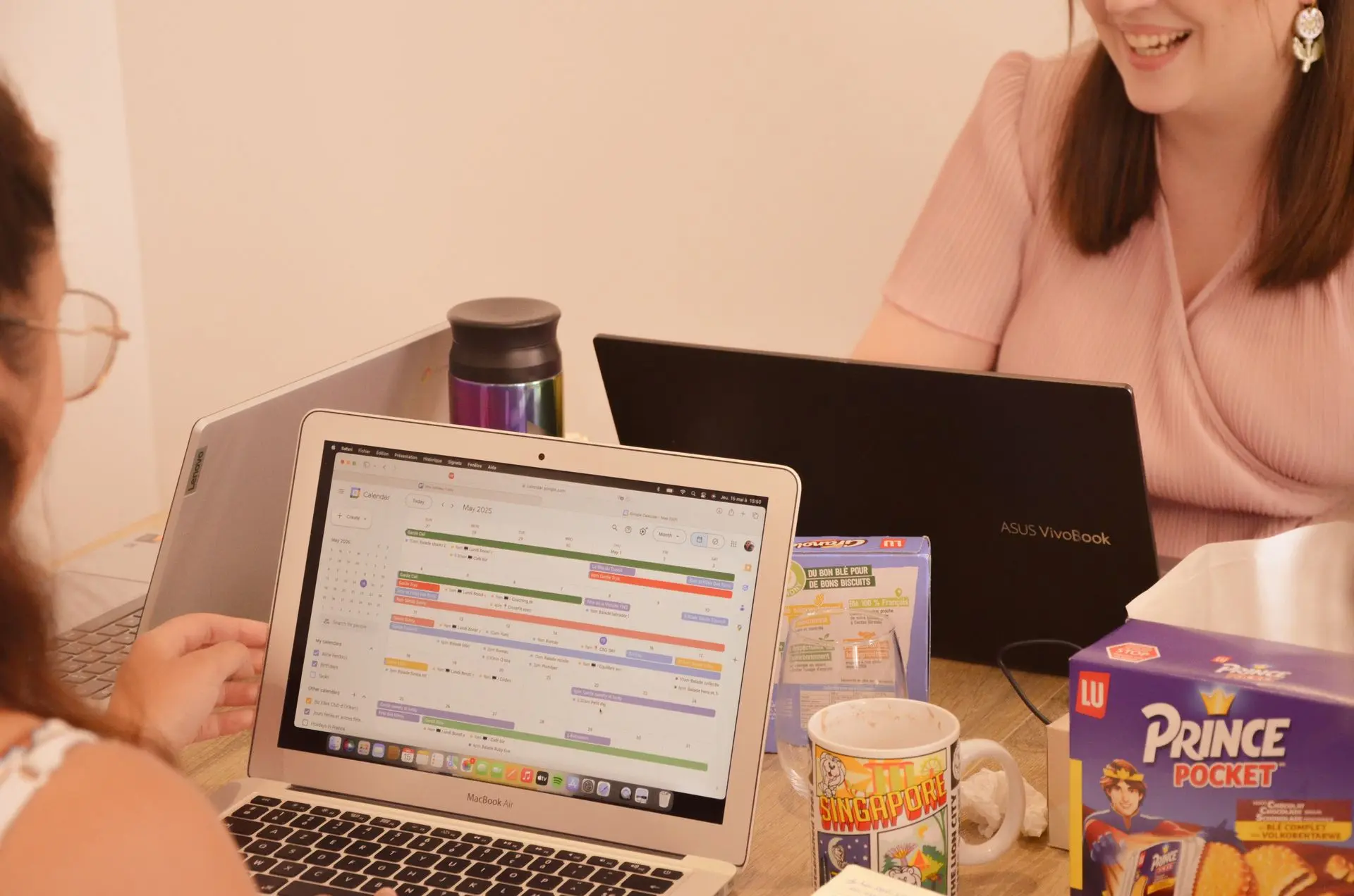 La réservation est obligatoire pour être sûr d’avoir une place dans l’espace qui te convient. Si tu as pris un WorkPass, tu peux poser tes journées quand tu veux. Tu peux le faire au compte-goutte ou les définir en une seule fois. L’essentiel étant de me prévenir pour que je sache quand tu viens.